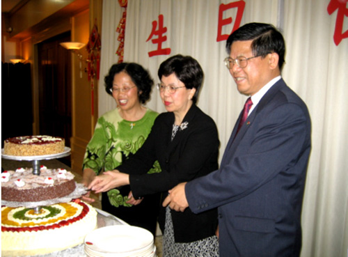 當(dāng)?shù)貢r(shí)間8月20日晚上,中國(guó)駐巴西大使館張燈結(jié)彩,喜氣洋洋。一場(chǎng)別開(kāi)生面的生日晚會(huì)在這里舉行。燭光的映照下,桌上擺放著臺(tái)灣同胞黃先生專門(mén)制作的生日蛋糕,還有使館的廚師精心準(zhǔn)備的長(zhǎng)壽面和壽桃。在祝福聲中吹滅蠟燭的是世界衛(wèi)生組織總干事陳馮富珍女士。近日,她正在巴西視察工作,今天是她的60大壽。