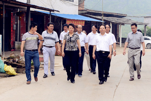 肖百靈一行深入邵陽(yáng)市洞口縣黃橋鎮(zhèn)潮水村實(shí)地考察建設(shè)扶貧工作。