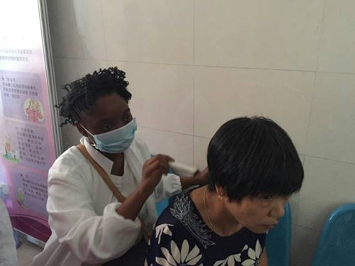 可別說,這些“洋醫(yī)生”雖然是老外,但是中文說的非常流利,一邊和玉壺群眾攀談,一邊熟練的做著各項(xiàng)檢查,尤其是做起中醫(yī)艾灸也是一絲不茍,手法嫻熟,得到了玉壺群眾的一致稱贊。