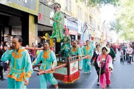 一口甌語方言對溫州老鄉(xiāng)來說別提多親切了。每年農(nóng)歷二月初一,從康樂坊始,至三月十五日五馬街止,通衢設(shè)紅樓,扎花門,懸燈結(jié)彩,街頭上演戲曲、彈詞、木偶 、猜燈謎等活動,好不熱鬧。