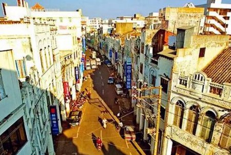 石板街面上,柱廊相連,騎樓相依,鐘磬音和著行人的往來;露臺閑意,牌匾倚墻林立,墻面上雕刻著百鳥朝鳳、龍鳳呈祥、松鶴延年,老海關(guān)等……??诘尿T樓老街,南洋風情味十足。