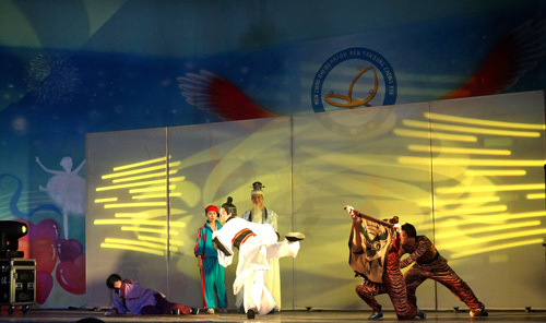 在臺下熱烈的掌聲中,浙江兒童藝術(shù)劇團(tuán)的演員們?yōu)楹⒆觽儙淼木试拕±_了帷幕。話劇用特殊的方式為給孩子們娓娓道來了中國古代思想家、政治家、教育家,儒家創(chuàng)始人孔丘的一生。少了許多書本上得枯燥乏味,卻多了許多妙趣橫生的情節(jié),孩子們投入其中,看得津津有味。