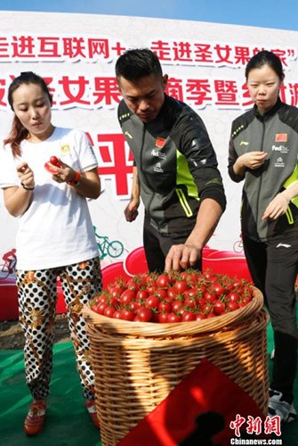 現(xiàn)場(chǎng)還舉辦了圣女果果中之王評(píng)比大賽,選派農(nóng)業(yè)專家、群眾代表分別試吃由各村委會(huì)送選的8個(gè)圣女果品種,投票選出心中的“果中之王“。國(guó)家體育總局乒羽中心副主任李永波、國(guó)家羽毛球隊(duì)隊(duì)員林丹、諶龍、李雪芮等也紛紛加入試吃行列,為”果中之王“投出珍貴一票。