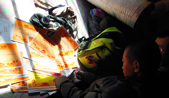 在西溝村的崔云龍家里,破爛的房子和滿屋的獎(jiǎng)狀形成了鮮明的對(duì)比,這是一個(gè)沒(méi)有母親且父親患有腦血栓的貧苦孩子,但他自幼就非常懂事,學(xué)習(xí)刻苦、勤勞簡(jiǎn)樸,在老師的推薦下與耿喜鋼建立了扶貧關(guān)系。在耿喜鋼的感召下,隨行人員也自發(fā)為孩子準(zhǔn)備了紅包。他們希望孩子能夠保持積極向上的心態(tài),健康成長(zhǎng)。
