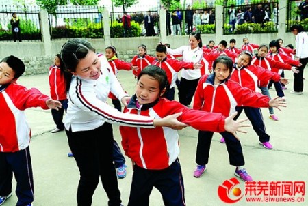 華裔志愿者走進(jìn)山東萊蕪小學(xué)校園傳授健康操