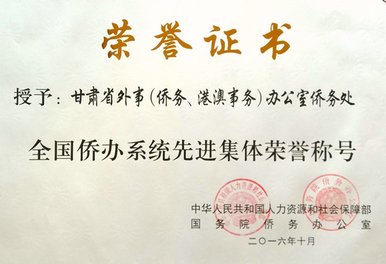 甘肅省外僑辦獲授“全國僑辦系統(tǒng)先進(jìn)集體”稱號