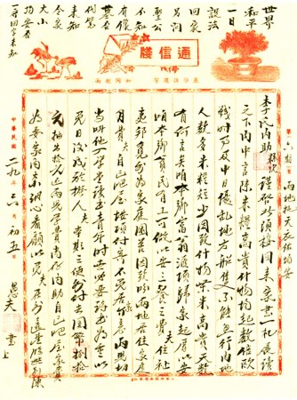 世界和平一日,設(shè)法回家。另問圣公不知有像墓否?代筆來知。合家大小均安否?一齊回字來知。