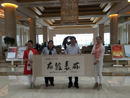 在淮安,歐婦總會代表們首先來到淮安市淮安區(qū)僑胞之家暨市僑聯(lián)書畫院創(chuàng)作基地參觀,觀看淮安市首屆美術(shù)作品展,并參觀吳承恩故居。