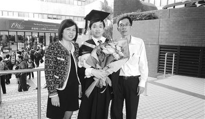 陳言棟夫婦與香港理工大學(xué)畢業(yè)的兒子合影。