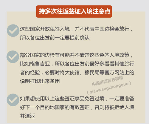 美國、加拿大、韓國……對(duì)于中國的多年多次往返簽證越來越多,不僅能夠節(jié)省我們的辦理費(fèi)用,更重要的是福利多多:原來,你只需要辦理某個(gè)國家的簽證,就可以在這么多國家免簽入境/過境了!小僑(微信號(hào):qiaowangzhongguo)為您搜羅各國多次往返簽證的免簽國,請(qǐng)查收!
