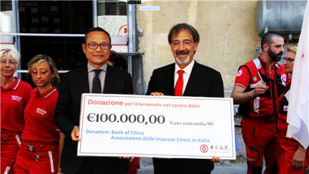 儀式上,李瑞宇代表中國紅十字會向意大利紅十字會捐款10萬美元,中國銀行米蘭分行行長邊濟東代表中國銀行和在意中資企業(yè)協(xié)會捐款10萬歐元,羅馬華人華僑聯(lián)合總會、意大利中國貿(mào)易發(fā)展促進(jìn)會代表羅馬僑團捐款約6萬歐元。