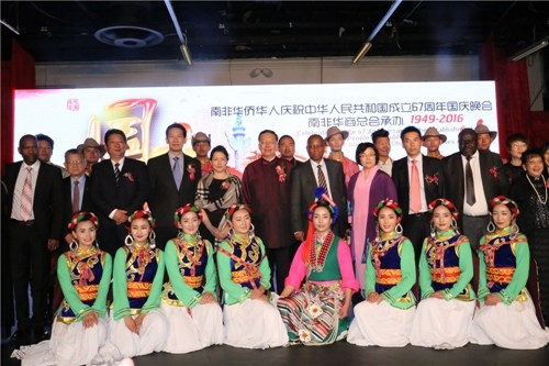 慶祝晚會(huì)由南非華商總會(huì)承辦,南非各華僑華人社團(tuán)協(xié)辦,正在南非訪問演出的云南藝術(shù)團(tuán)為來賓們獻(xiàn)上了富有民族特色的歌舞和器樂表演。
