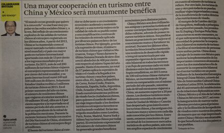 駐墨西哥大使發(fā)文鼓勵兩國人民加強旅游交流