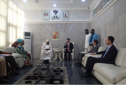 中國僑網3月13日電 據中國駐尼日利亞大使館消息,近日中國駐尼日利亞大使館公參林靜、經商參贊趙林祥等人前往奧約州開展預防性領事保護工作和安全巡視,召開僑胞和中資企業(yè)座談會,檢查中地公司供水廠機電安裝項目等企業(yè)安全生產情況,并拜會了奧約州州長阿吉莫比。