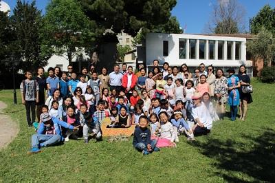 朱立英與中文學校師生及學生家長合影