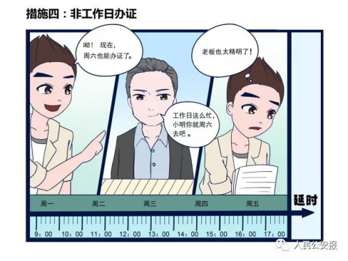 3、“非工作日辦證”,為上班族辦理證照提供周六、辦證高峰以及節(jié)假日前延時(shí)、錯(cuò)峰受理申請(qǐng)服務(wù);