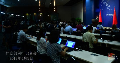 2018年6月5日外交部發(fā)言人華春瑩主持例行記者會