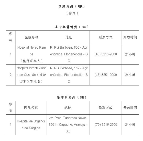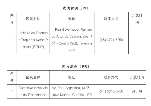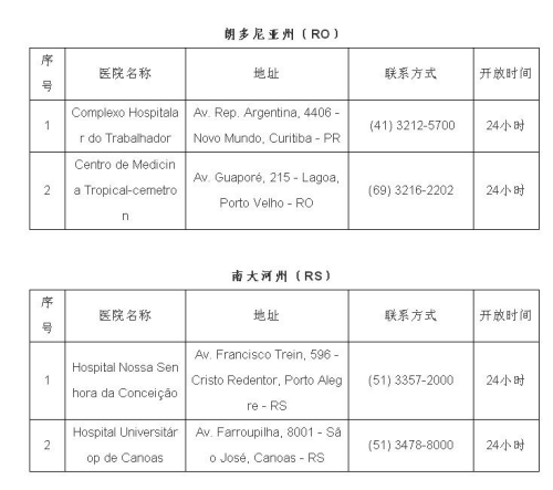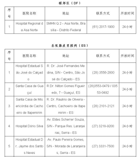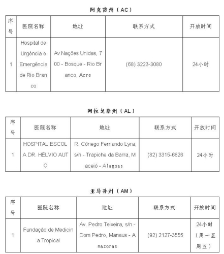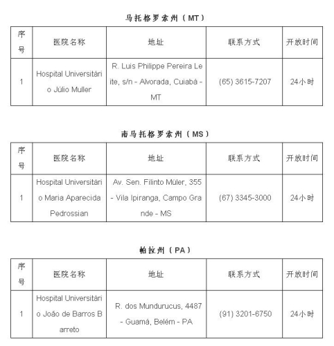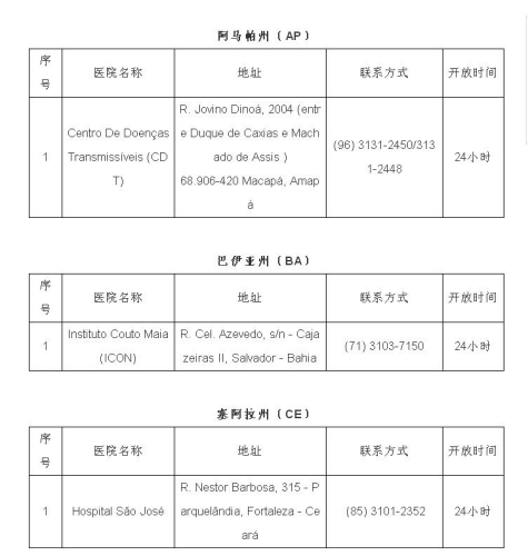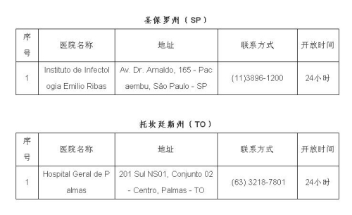 2月1日,巴西衛(wèi)生部宣布巴新型冠狀病毒感染肺炎疑似病例達16例,暫未出現(xiàn)確診病例。日前,巴西衛(wèi)生部公布全國可接診新型冠狀病毒感染肺炎病例的醫(yī)院名單,駐巴西使館即收集整理了相關醫(yī)院地址、聯(lián)系方式等信息,供大家參考。