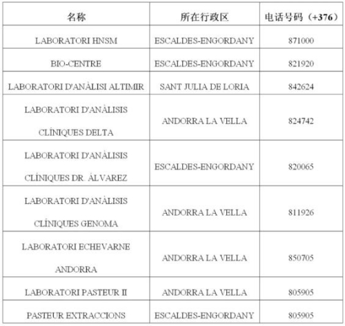 駐西班牙使館公布認(rèn)可的安道爾境內(nèi)核酸檢測(cè)機(jī)構(gòu)