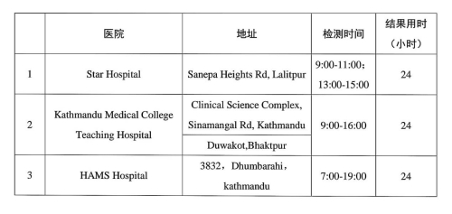 答:有關(guān)檢測機(jī)構(gòu)均為尼泊爾衛(wèi)生部門指定的具備為外國公民COVID-19核酸檢測資質(zhì)的醫(yī)療機(jī)構(gòu),使館不參與任何定價、收費環(huán)節(jié),中國公民可自己選擇去其中任意一家。