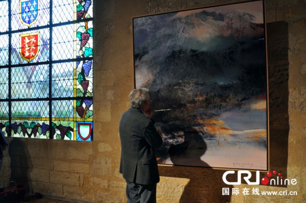 當(dāng)晚他在法國(guó)圣埃美隆市的個(gè)人畫展上展出了二十余幅“后抽象主義”風(fēng)格的油畫。這位旅法華人畫家介紹并解釋了他的作品為力圖體現(xiàn)“天人合一相結(jié)合,以及對(duì)存在的一種全新的認(rèn)識(shí)”。