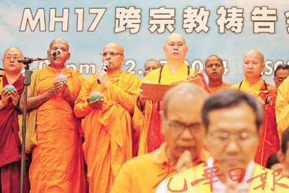 中國僑網(wǎng)7月24日電 據(jù)馬來西亞《光華日?qǐng)?bào)》報(bào)道,馬航MH17空難事件造成298人無辜身亡,令人哀慟;此事件亦讓馬來西亞各民族更團(tuán)結(jié),不分宗教信仰一同為亡魂祈福,以求安息。