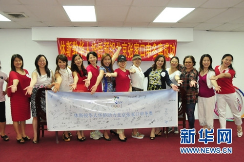休斯敦辣媽團(tuán)體為北京張家口申辦2022年冬奧會(huì)助力。新華網(wǎng)記者 張永興攝