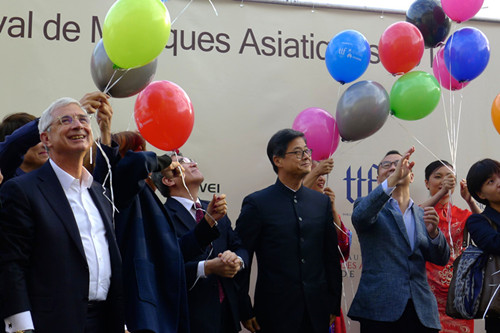 法國國民議會議長巴爾托洛內(Claude Bartolone)、中國駐法國大使館公使關鍵、教育公參馬燕生、巴黎大區(qū)第一副主席德拉貢特里(Marie Pierre de la Contrie)、巴黎十三區(qū)區(qū)長顧梅、巴黎市議員陳文雄、巴黎中國文化中心主任殷福、中國駐法使館領事部一秘王原、華為法國總經(jīng)理宋凱、TTF總裁吳峰華、法國演員Frédéric CHAU等各協(xié)辦、支持單位的中法代表出席開幕儀式。他們在喜慶的音樂聲中與來到現(xiàn)場的法國各族裔市民同喜同樂。