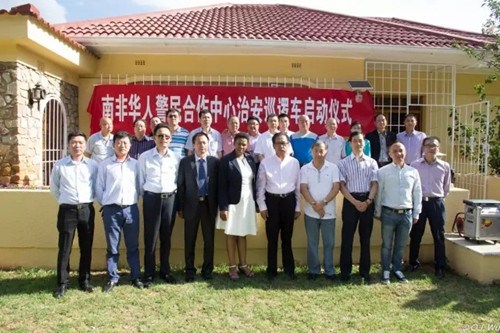 南非華人警民合作中心主任吳少康及理監(jiān)事干部們與應邀前來的南非警方偵察部總監(jiān)莫斯凱莉一同出席了當天的啟動儀式。
