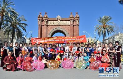巴塞羅那華人社團(tuán)穿旗袍歡慶“三八”婦女節(jié)