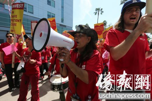 示威護(hù)士的口號包括“沒有護(hù)士就沒有凱撒醫(yī)療中心”,他們還呼吁院方重視對病人護(hù)理的投入,以最大限度地保護(hù)病人的利益。組織此次罷工的工會(huì)是加州護(hù)士協(xié)會(huì)。去年7月,凱撒洛杉磯醫(yī)療中心的1200名注冊護(hù)士通過投票方式選擇了加州護(hù)士協(xié)會(huì)這家工會(huì)組織。