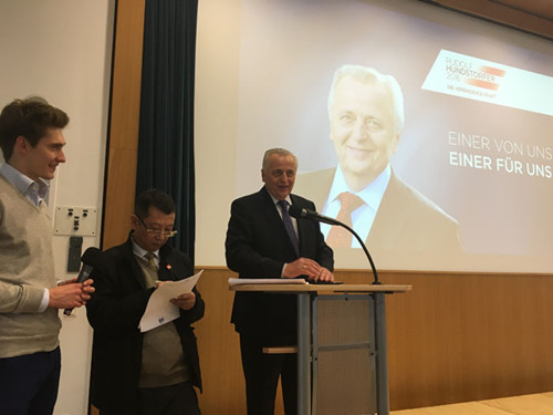 奧中友協(xié)華人委員會(huì)主席蔣可良在講話(huà)中說(shuō),洪德斯托夫部長(zhǎng)作為新一屆的奧地利總統(tǒng)候選人,在百忙之中和華僑華人見(jiàn)面,充分說(shuō)明了洪德斯托夫?qū)β脢W華僑華人的重視和關(guān)心,他對(duì)洪斯托夫先生表示衷心的感謝。