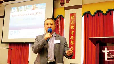 華商會會長譚小平解釋 “特別服務(wù)區(qū)”的概念與宗旨。他指出芝加哥共有53個(gè)特別服務(wù)區(qū),包括了商業(yè)區(qū)“州街”、林肯公園等,規(guī)模大小不一,有年度預(yù)算從1萬元到240萬元不等,決定于小區(qū)要達(dá)成的目標(biāo)而設(shè)制。