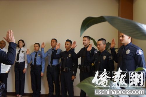 美國阿罕布拉市警局兩名華裔警員宣誓上崗