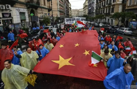 3月,那不勒斯,當(dāng)?shù)厝A人手舞中國