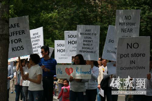 俞敬東是貝爾維尤市(Bellevue)反對(duì)大麻進(jìn)入市區(qū)抗議活動(dòng)的負(fù)責(zé)人,此次雷德蒙德的集會(huì)他也特地趕來(lái)支持。他指出,美國(guó)人可能因?yàn)槲幕脑?,?duì)大麻的看法和華人不同,但是這個(gè)活動(dòng)得到大家的支持也反映了很多市民對(duì)于大麻店選址離學(xué)校和社區(qū)太近這件事還是很反對(duì)的。他指出,他們進(jìn)行抗議的主要宗旨是希望大麻店不要開(kāi)在學(xué)校周圍,盡量離孩子們遠(yuǎn)一點(diǎn)。