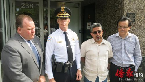 中國(guó)僑網(wǎng)5月27日電 據(jù)美國(guó)《僑報(bào)》報(bào)道,當(dāng)?shù)貢r(shí)間5月26日上午,美國(guó)芝加哥華埠所在的第九警局在中國(guó)城華裔博物館召開新聞發(fā)布會(huì),郭兆登局長(zhǎng)(Daniel J. Godsel)介紹了近期在華埠發(fā)生的數(shù)起搶劫案。他同時(shí)強(qiáng)調(diào),雖然警方已經(jīng)對(duì)近期嚴(yán)峻的治安狀況做出了針對(duì)性的舉措,但華裔民眾依然應(yīng)當(dāng)提升警覺,避免成為不法分子的行兇目標(biāo)。25區(qū)區(qū)長(zhǎng)蘇禮士及11區(qū)區(qū)長(zhǎng)唐信參加了新聞發(fā)布會(huì)。