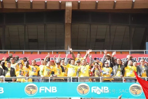 這一次,不僅僅是來自南非當(dāng)?shù)氐呐笥褌儯菄?guó)大后援會(huì)也和眾多華人朋友一起,踴躍參加此次活動(dòng)。在FNB體育場(chǎng)的看臺(tái)上,在非國(guó)大成員熱情的吶喊和宣傳鼓動(dòng)當(dāng)中,也可以看到華人積極參與的身影。