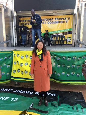 活動中,約堡中心地區(qū)黨部首選當眾宣布各選區(qū)候選人,來自11個選區(qū)的民選議員和差額議員候選人,向在場的數(shù)千名選民亮相。當介紹118區(qū)候選人趙建玲時,會場上一片歡騰,眾多黨員和支持者涌到臺前,祝賀和鼓勵這位不同膚色的佼佼者。