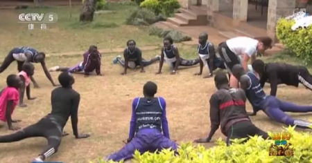 在肯尼亞內(nèi)羅比,即將參加田徑項目的難民運動員正在泥地上訓(xùn)練: