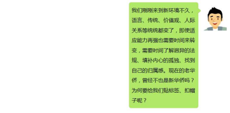 對(duì)于新華僑而言,最重要是盡快學(xué)習(xí)這里的規(guī)矩,適應(yīng)這里的規(guī)則。為什么會(huì)被人屢屢詬?。颗懦坝猩坨R”的因素,自己的確也有做得不夠到位的地方。拿出誠(chéng)意,虛心向老華僑請(qǐng)教,相信會(huì)大有收獲。