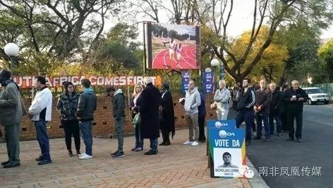 真是早起的鳥(niǎo)兒有蟲(chóng)吃,勤勞的DA工作人員把現(xiàn)場(chǎng)選民都吸引到那個(gè)桌子上登記住址情況了。我所在的居住區(qū)一直是DA區(qū),所以白人居民個(gè)個(gè)都會(huì)早起行使自己的民主權(quán)利,偶爾可以看到一兩個(gè)黑人或雜色人在排隊(duì)等待投票, 但是由于DA的力量很強(qiáng),所以在這個(gè)投票站里,從來(lái)沒(méi)有見(jiàn)過(guò)ANC或EFF的臨時(shí)帳篷,直到后來(lái)聽(tīng)一個(gè)其他選民講“我們可以不必登記直接進(jìn)去投票”,這樣我們才另行排隊(duì),徑直走到學(xué)校大廳里設(shè)置的投票站,不到十分鐘的工夫,就把自己神圣的一票投完了。