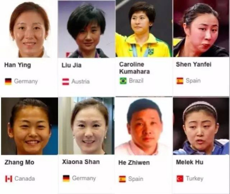 里約乒乓球選手近1/4是華人