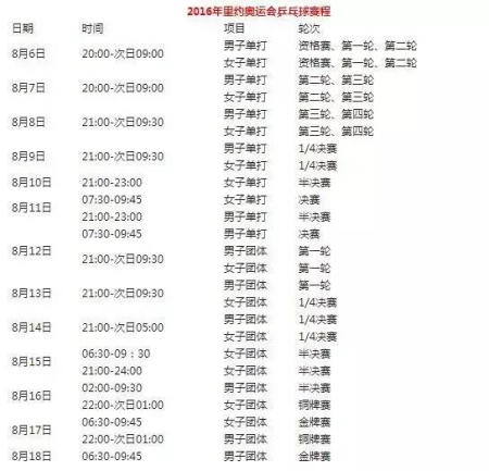 附:乒乓球各項賽程