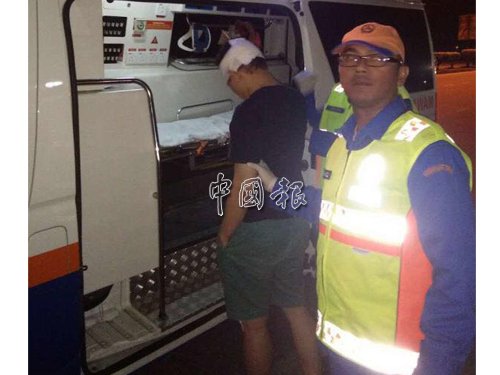 民防部隊(duì)救護(hù)車將2名傷者送至醫(yī)院接受治療。(馬來(lái)西亞《中國(guó)報(bào)》)