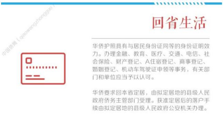 如:華僑可憑本人護(hù)照辦理金融、教育、醫(yī)療、交通、電信、社會(huì)保險(xiǎn)、財(cái)產(chǎn)登記、住宿登記、商事登記、婚姻登記、機(jī)動(dòng)車(chē)駕駛證申領(lǐng)等事務(wù);