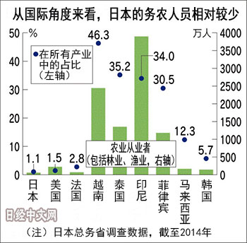 截至2016年2月,日本的務(wù)農(nóng)人數(shù)為317萬人,較10年前減少了208萬人。65歲以上務(wù)農(nóng)人員在整體中的占比由38%上升到了47%,人手嚴(yán)重短缺。