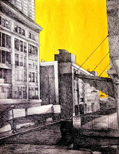 14歲的顏欣桐,以作品《Urban Gold》獲得了大賽全美繪畫金獎(jiǎng),這幅作品以紐約市為創(chuàng)作靈感,描繪安靜都市中伊甸園般的祥和氛圍。她認(rèn)為創(chuàng)作過程中,最大困難是表達(dá)建筑的透視感。
