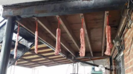 我覺(jué)得在自己家里曬是可以的,肉也不是給他(鄰居)吃的。我也在家里掛臘肉,也是自己吃,不是拿去賣(mài)的,沒(méi)有招過(guò)蟲(chóng)子老鼠。意大利人也在街上賣(mài)香腸水果,這是一樣的。