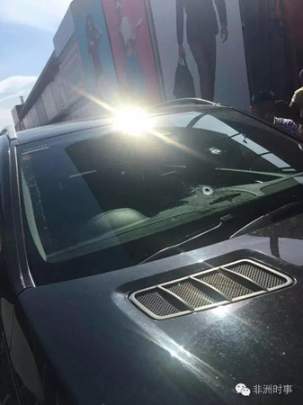 當(dāng)時華人開車經(jīng)過此地,被匪徒攔截,匪徒朝華人車輛連開數(shù)槍,所幸人沒有被子彈打到,汽車擋風(fēng)玻璃留下兩個子彈打穿的痕跡,車上財物被洗劫一空。